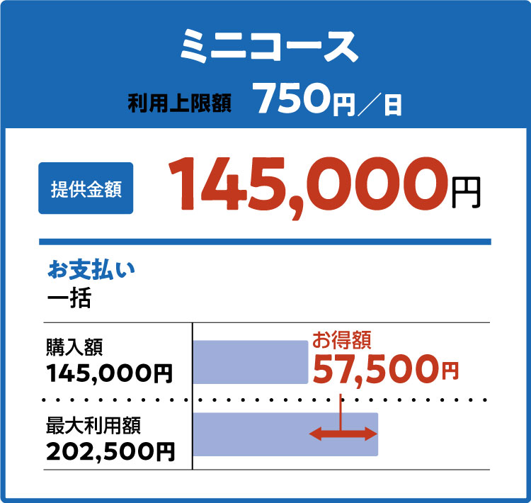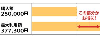最大利用額及びお得額は学事確定前に算出しているため、営業スケジュール次第で変わる場合があります。