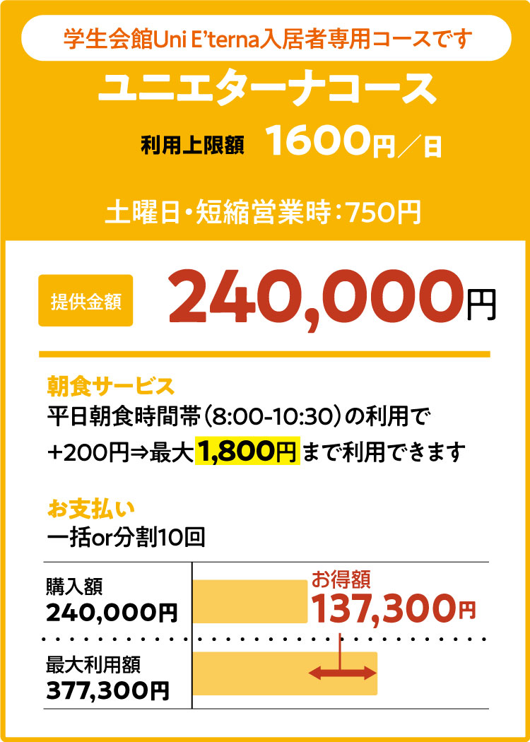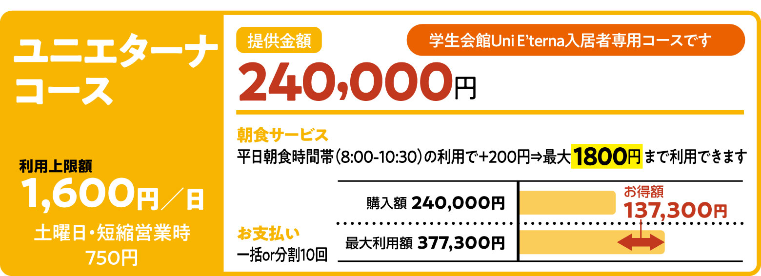 | ミールカード | 食事専用の定期券システム | 学生証 | 必要 | 食事メニューのみ | 3.9% |