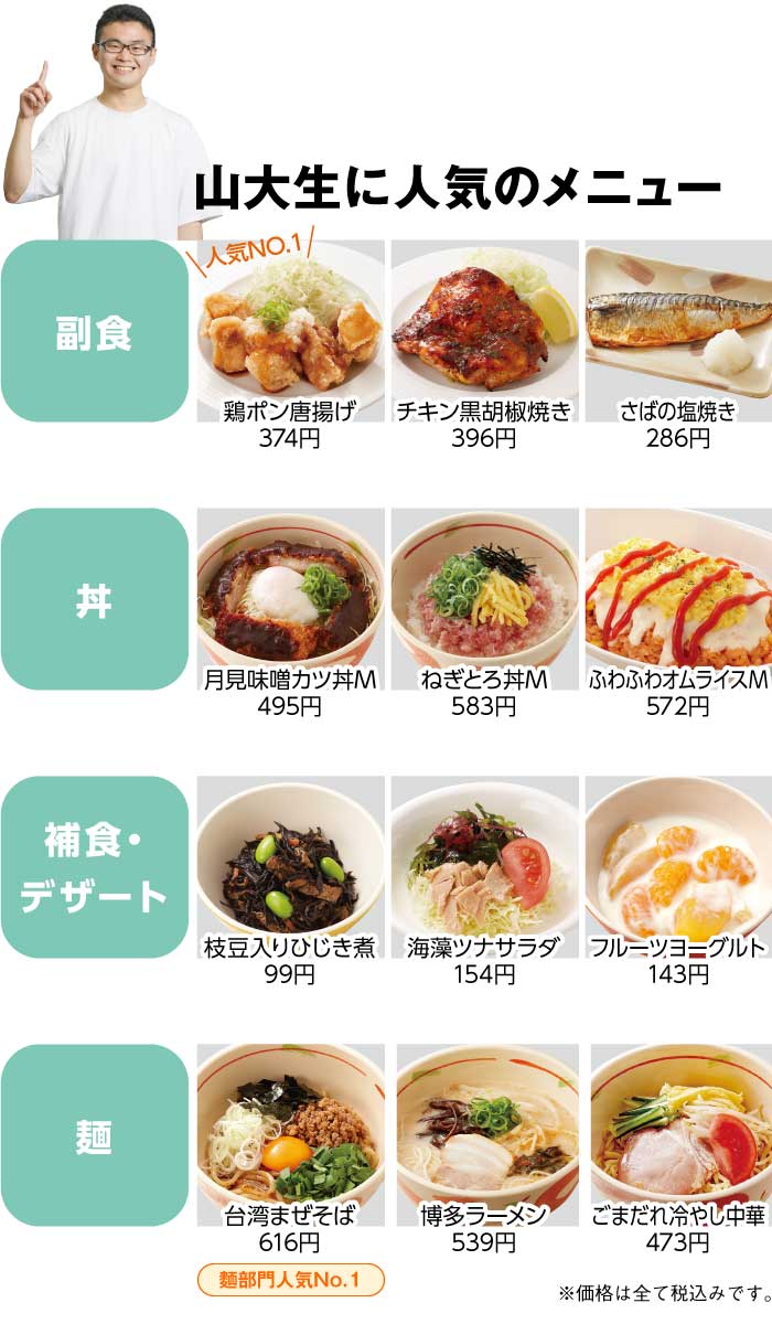 お弁当や焼きたてパン、ソフトクリームなどの各種デザートも学生に大変人気です。